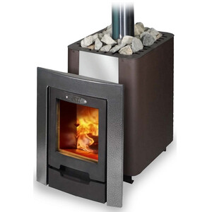 Банная печь оснащена стальной дверкой со стеклом, японского производства Nippon, благодаря которому можно наслаждаться горением дров из комнаты отдыха.